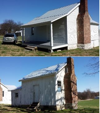 This battlefield preservation supporter visited the two remaining former slave cabins at Clover Bottom. In 1858, twelve cabins behind the main house replaced dwellings scattered about the plantation because the overseer thought “there was too much liberty among the slaves that would lead to a spirit of unrest.” (McCline narrative)